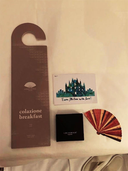 che l'hotel ha lasciato come dono nelle suite di tutti i membri dell’esclusivo club “Fan of M.O.”
